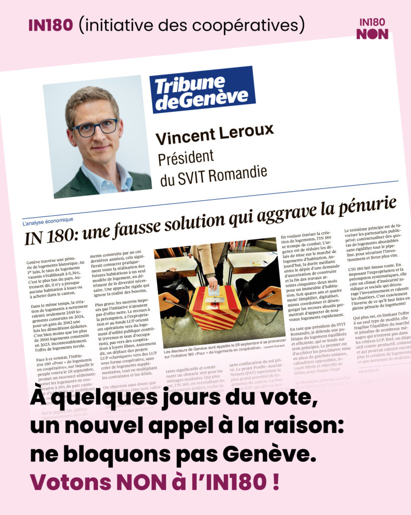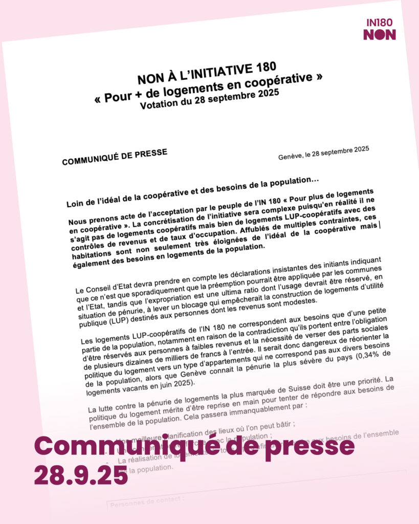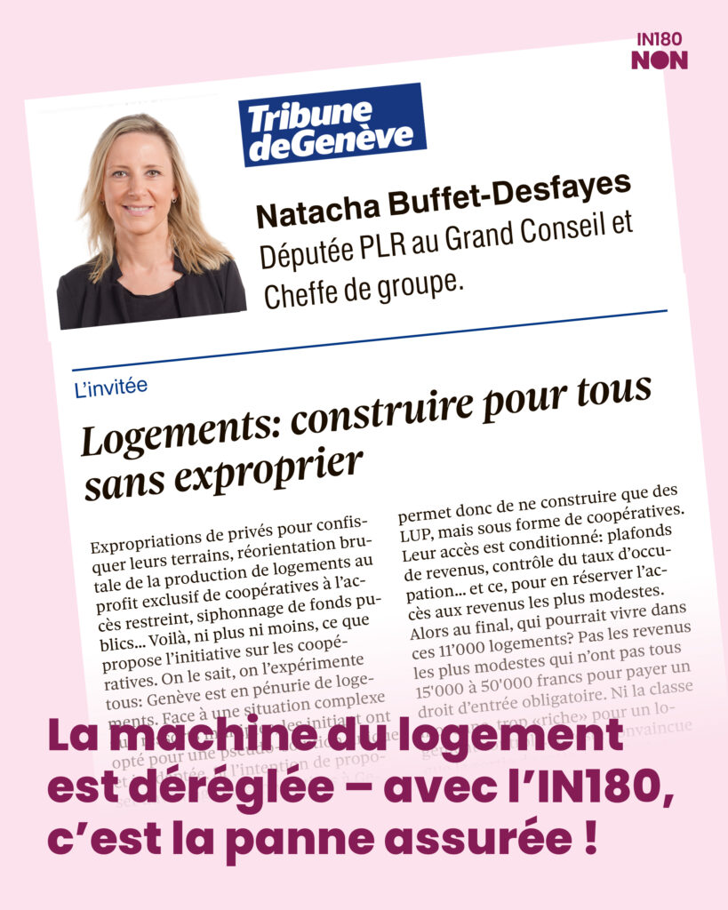 Plutôt que de proposer une solution équilibrée et durable, l’IN180 impose un changement radical, qui malmène une politique du logement déjà sérieusement mal en point : diversité sacrifiée, propriété foncière attaquée, moyens publics détournés. Ce n’est pas un outil de développement : c’est un instrument de blocage.